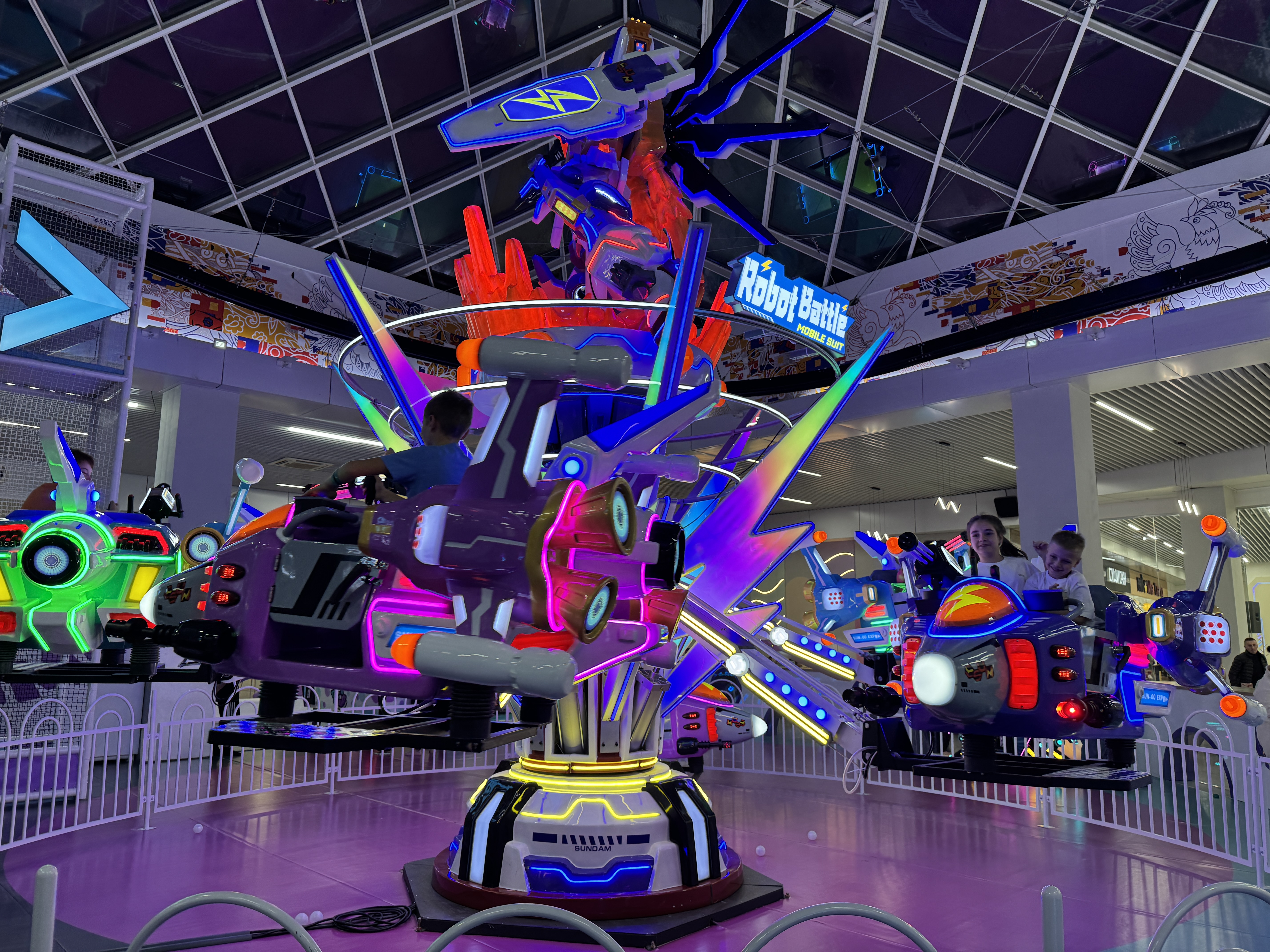 Детский центр понравился. Все новое, интересно было детям 4 и 12 лет. Особенно понравилось карусель с самолетиками и светящиеся горки. ????
